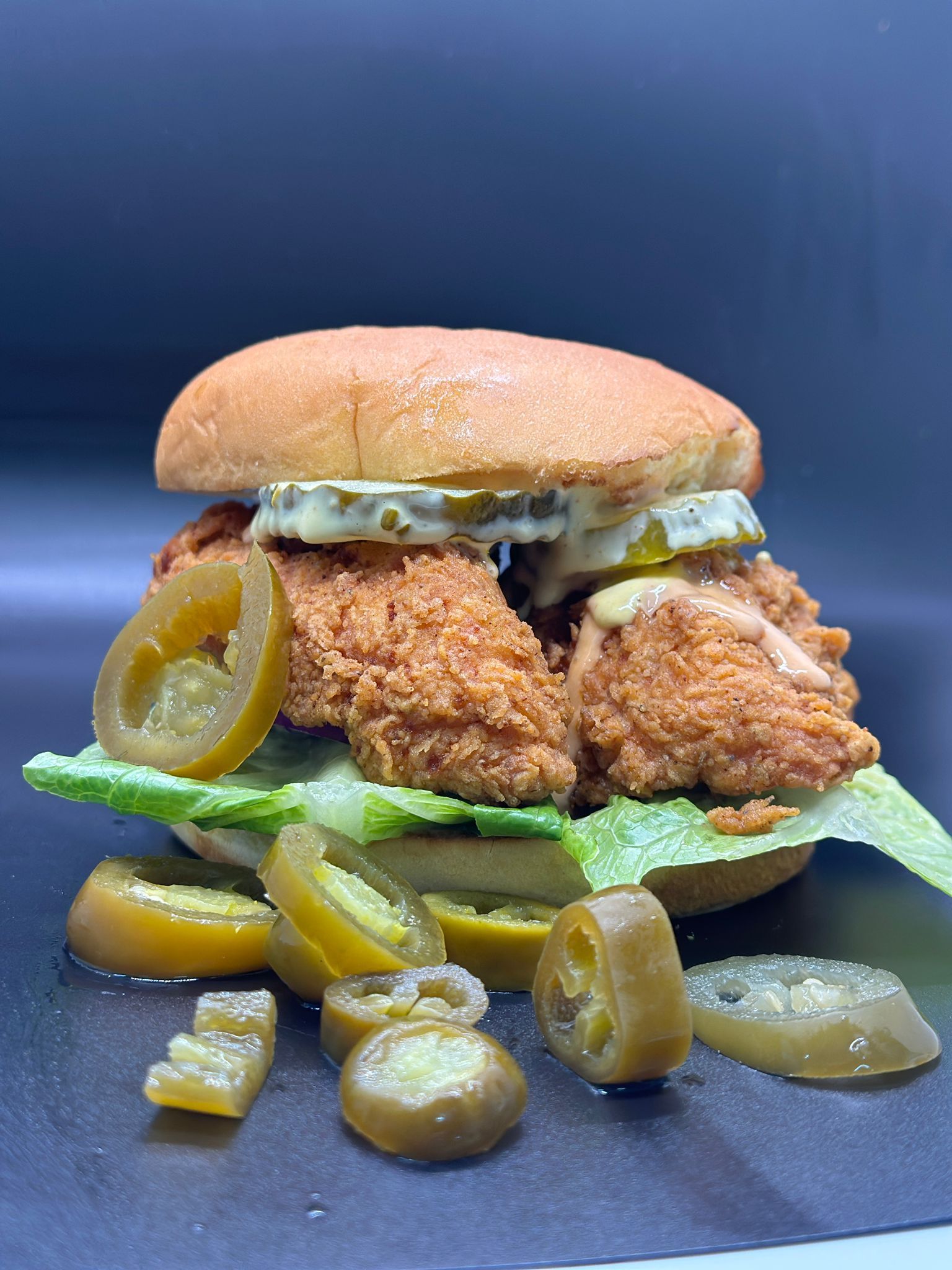 Crispy chicken breast coated in buffalo sauce,topped with creamy coleslaw.
